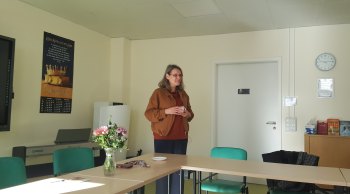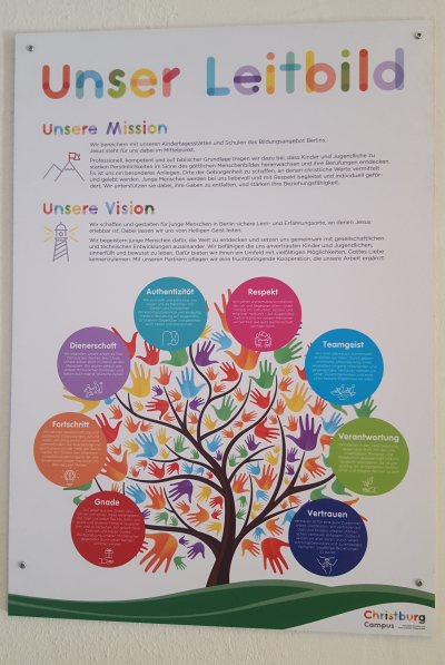 Im Anschluss berichtet uns die kommisarische Schulleiterin Joke Henninger über die Geschichte der Schule und ihres Trägers, des Christburg Campus. Sie selbst hatte gerade ihr 30jähriges Dienstjubiläum, ist an der Elisabeth-Abegg-Grundschule im Prenzlauer Berg als Schulleiterin tätig und erst in diesem Jahr mitzuständig für die Schule hier. Und doch spüren wir, sie ist schon voll auch hier zu Hause und mit ganzem Herzen dabei.