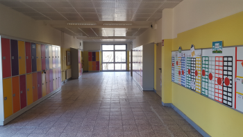 Hier ein Blick in den Flur mit den Schließfächern für alle Schüler: