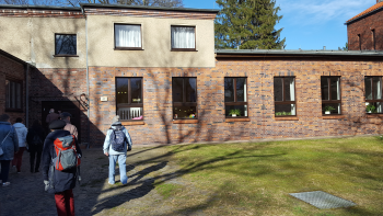 Herr Polakowski, der seit seiner Kindheit hier wohnt und mit der Geschichte des Bauwerks und der Gemeinde bestens vertraut ist, wies uns so nicht nur auf das hin, was zu sehen ist, sondern auch auf die Geschichte, wie es dazu kam mit alle ihrer Problematik.