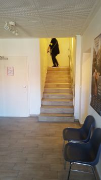 Dort geht es nun die Treppe hinauf in den großen Saal.
