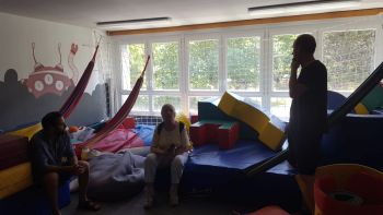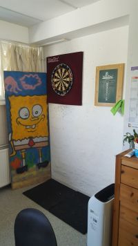 Für die Jugend gibt es einen großen Raum mit Sitzecken, Spielen, einem Billardtisch, einer Dart-
