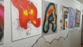 Im Flur steht mit großen Buchstaben liebevoll „Krafti“ an der Wand.
