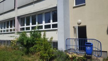 Die offene Tür ganz am Ende des Gebäudes ist der Eingang zum „Kraftwerk“, das zur Zeit wochentags von 13 Uhr für Kinder und von 14 Uhr bis 19 Uhr für Jugendliche geöffnet ist.