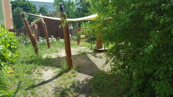 Viel Grün erwartet die Jugendlichen und Kinder hier, dank des Erhalts entsprechender Fördermittel vor 2 Jahren neu und mit dem Willen zu Nachhaltigkeit gestaltet: