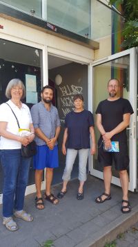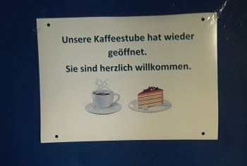 Anschließend werden wir in die Kellerräume geführt, wo an der Tür zum Kaffee eingeladen wird, ein Hinweis neben Kita und Schülerzentrum auf die dritte Aktivität in diesem Haus: die Ausgabestelle von „Laib und Seele“ der Kirchengemeinde Hellersdorf, deren Besucher sich hier stärken können.