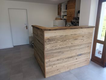 Beim Eintreten ins Haus fällt der Blick links auf eine Sitzecke und rechts auf den Tresen, auch ein Geschenk, von dem uns Jonathan erzählt, wie wunderbar es Gott gefügt und ihren Wunsch erfüllt hat.