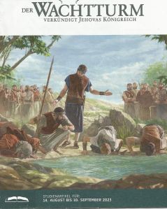 Nach einem weiteren Lied „Bleibt standhaft“, wie es in der Studienausgabe des „Wachturms“ für den 14. August bis 10. September für den heutigen Tag vorgeschlagen wird, wurde der dort abgedruckte Text abschnittsweise von einem Ältesten vorgelesen und vom moderierenden Ältesten die dort unten kleingedruckt stehenden Fragen an die Versammlung gerichtet. Darauf meldeten sich immer etliche der Anwesenden. Er kannte alle mit Namen! Viele hatten den Text auf ihrem Handy bzw. Tablet vor sich, andere das Heft und sich dort schon etliches angestrichen und Bemerkungen dazu geschrieben, vor allem auch, die dort angegebenen Bibelsprüche schon durchgelesen. Zwei Männer gingen mit langen Stangen, an denen ein Mikrophon befestigt war, durch die Reihen, so dass jeder, der die Fragen beantwortete, gut zu verstehen war. „Wie uns Gottesfurcht schützt“ war das Thema und im Mittelpunkt standen Verse aus dem Buch der Sprüche 9,13-18 und dann 9,1-.6. Alle Fragen bezogen sich auf den gelesenen Text im „Wachturm“ und dienten dazu, ihn genauer zu betrachten.