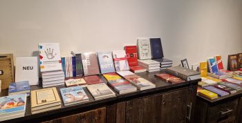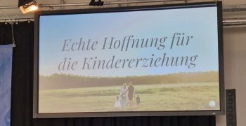 Ein Büchertisch hat ein reichhaltiges Angebot zu Fragen der Kindererziehung, Vater- bzw. Muttersein und Ehefragen, sicher auch etliche aus dem eigenen Verlag wie Übersetzungen aus dem Amerikanischen.