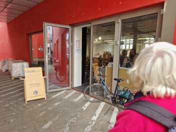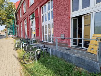 Wir verließen den Saal dieses Mal durch die offene Tür zur Chemnitzer Straße, die näher an der Bushaltestelle liegt und wir beim Ankommen übersehen hatten.