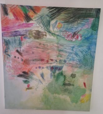 Auf dem Weg durch den Flur wie im ganzen Haus sind die Werke der Bewohner im Kunstatelier ausgestellt.
