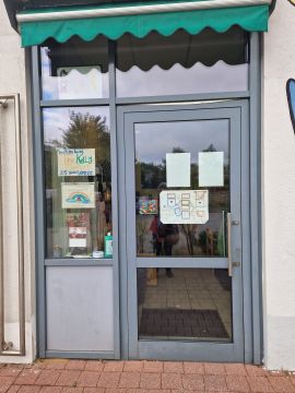 Beim Abschied wollten wir noch einen Blick in das Musikatelier werfen, aber da sang gerade eine Bewohnerin so sehr schön mit Begleitung am Keyboard. Da wollten wir nicht stören.