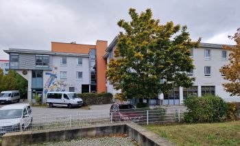 Von der Straßenbahnhaltestelle U-Bahn Hellersdorf gelangt man durch den Park hinter der U-Bahn-Brücke geradewegs zu diesem 1999 eingeweihten Haus, in dem 41 Bewohner*innen mit vorwiegend geistiger Behinderung im Alter von 21 bis 85 Jahren wohnen und mit viel Liebe und Engagement betreut werden.