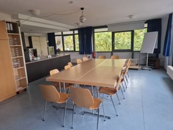 Wir werden von der Leiterin des Hauses Frau Gentsch in diesem schönen hellen Raum empfangen und mit Getränken bewirtet. Hier findet u.a. einmal monatlich eine Andacht für die Bewohner und Bewohnerinnen statt, die von der Gemeindepädagogin der evangelischen Kirchengemeinde Barbara Jungnickel gestaltet wird, aber auch Disko-Veranstaltungen und vieles mehr.