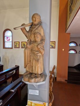 Beim Eintreten in den Kirchraum wird man von Heiligen Josef und dem Jesuskind begrüßt.