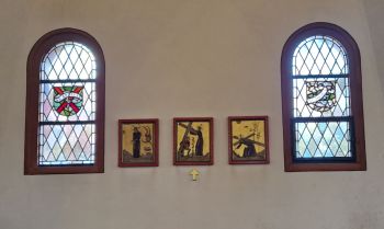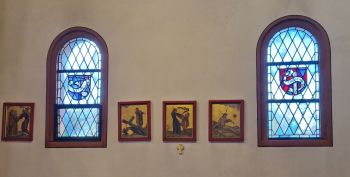 An den Seitenwänden der Kirche sind die 14 Kreuzwegstationen durch Ruth Schaumann gestaltet worden.