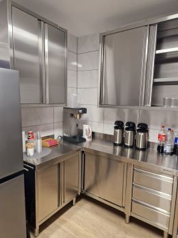 Die bisherige Teeküche links daneben wurde völlig neu gestaltet und eignet sich nun auch dafür, eine größere Anzahl von Menschen zu bewirten.