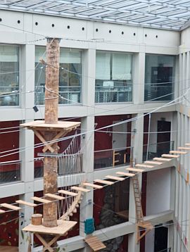 Beim Verlassen des Fahrstuhls sind wir "aus Versehen" selbst im Innenhof unter dem Kletterpark.