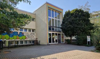 Wir werden die Treppe hinunter nach links in den großen Raum geführt, der durch seine Spiegelwand noch größer wirkt. Wir hatten schon im letzten Jahr gehört, dass der Raum nicht nur vom Schülerzentrum sondern auch von "Laib & Seele" genutzt wird.