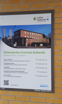 Zurück auf dem S-Bahnsteig fällt uns ein Plakat ins Auge vom Diakonischen Zentrum Bethesda.