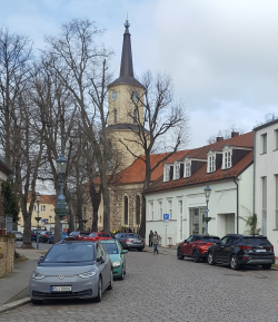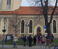 Besuch des Gottesdienstes in/an der Andreaskirche in Teltow am Palmsonntag, dem 10. April 2022